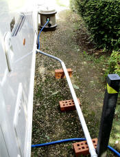 tarpaulins overlap the awning mudflaps and the caravan skirt